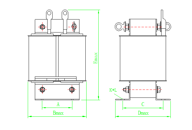 電感量(mH) | 外形尺寸 Bmax×Dmax×Emax (mm) | 安裝尺寸 A×C (mm) | 安裝孔 K×L (mm) |